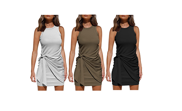 LILLUSORY Women's Spring Casual Sleeveless Beach Tank Dress Bodycon Ruched 2025 Summer Mini Dresses 5 customer reviews About this Item ★FEATURE : Bodycon Dress, Tank Dress, Wrap Party Dress, Sleeveless, Crew Neck, Tie Waist. With The Same Color Lining, Makes Sure Will Not See Through and Will Offer You First-Class Comfort.The Simple and Basic Dress Design Makes This Mini Dress Suitable for Most Lady’s Body Shape. ★UNIQUE STYLE:The Spring and Summer Bodycon Dress Is Crafted In a Stretchy Knit with a Crewneck and Sleevesless. With Butterfly Straps On Waist Design To Modify Your Body Lines,The Above Knee Length and Front Tie Waist Look Makes You Look Slimmer and Prolonged The Legs Length. ★Garment Care: Hand Wash In Gentle Cold Water/ Machine Wash In Laundry Bag/ Color Separated Washing/ Iron The Folds Before Photography/ Do Not Bleach More Read... Best Prices $33.99/-