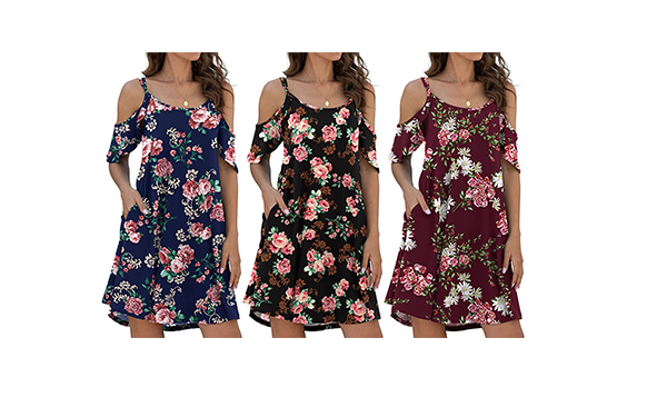MERRYVILLA Women's Summer Cold Shoulder Spaghetti Strap Casual Sleeves Swing Dress Beach Cover Up Dress with Pockets 4 customer reviews About this item 【Material】:95% Rayon ,5% Spandex.This summer spaghetti strap dress is made of comfortable fabric, which is light weight, stretchy, breathable and skin friendly, making you feel soft and comfortable. 【Features】:This summer cold shoulder dress is combined with a round neck, spaghetti straps,floral Printed,above knee mini,round neckline and A-line look, tunic top dress, swing dress, Cold Shoulder Ruffle Sleeve A-Line Dress,which will make you more outstanding. 【Match】:This fashionable Spaghetti Strap Swing dress can wear with jeans, boots, scarves,tights, beach hats, necklaces, jackets and Sandals .It will make you more sexy and beautiful. More Read... Best Price: $25.99/-